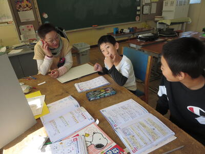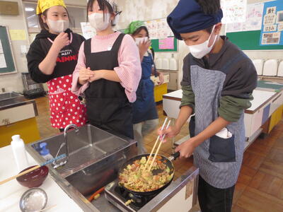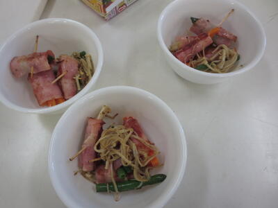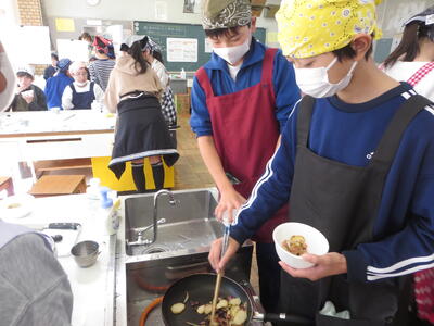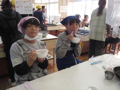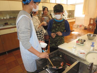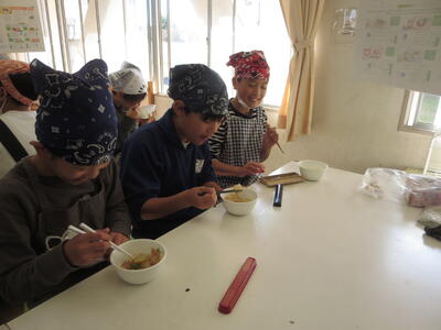 調理実習(6年生)、ゆうゆう1の様子 投稿: 承認者 (16:54) 6年生は、野菜、ベーコン、厚揚げなどを使った調理実習を行いました。 肉と野菜のいい匂いがしました。味も◎です。 ゆうゆう1では、算数の学習を仲良く行っていました。