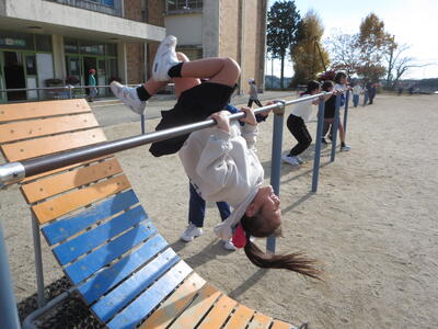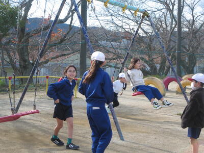 今日は風が強い日でしたが、休み時間にはたくさんの児童が外で遊びました。