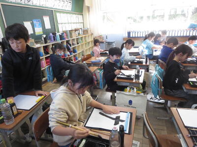 3-1,3-2の様子 投稿: 承認者 (16:29) 今日は、3年生を紹介しますが、3-3の取材ができませんでした。3-3は、15日に取材し、必ず紹介します。 3-1 書写 「友だち」を書きました。一言もしゃべらず、集中していました。 3-2 学級活動 お楽しみ会の話合いが決まったところです。大喜びです。