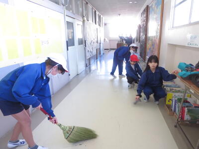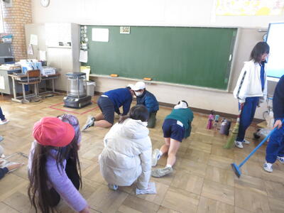 掃除を頑張りました(5年生) 投稿: 承認者 (12/22) 今日は、5年生の清掃活動の様子を紹介します。 掃いたり、拭いたり、一生懸命掃除をしました。すがすがしい気持ちで2学期を終了できるといいです。