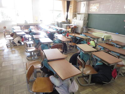 今日は、地震とその後に起きた火災を想定した避難訓練を行いました。