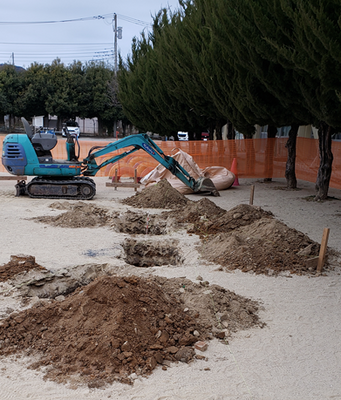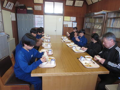 学校の様子 投稿: 承認者 (01/27) 先週から、6年生と校長先生の交流給食を行っています。今日は、6-2の10名が来室し、楽しく会食しました。 ところで、今、校庭で工事が行われています。完成は土曜日です。さて、何の工事でしょう。