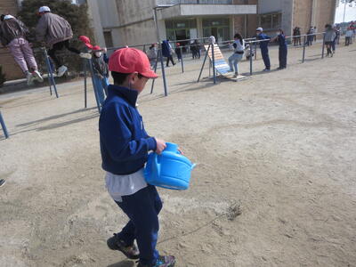 何週間も雨が降らないので、砂埃がひどいです。水撒きをしていたら、子どもたちが手伝ってくれました。