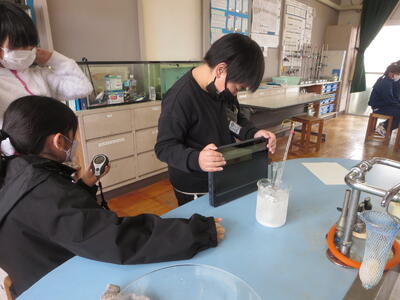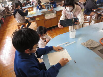 4年生 理科 水がどのように凍るのか観察、記録しました。