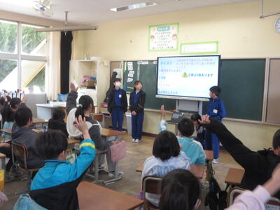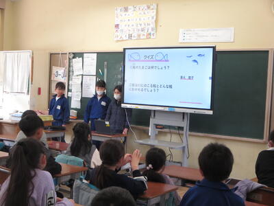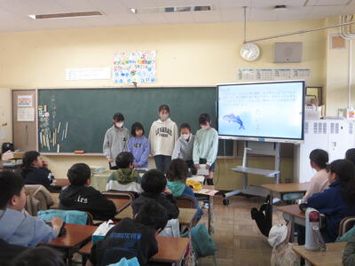 十王川とその周辺の環境について、学んだことや調べて分かったことなどを3年生に向けて発表しました。