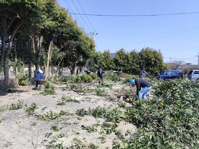 21日(土)、十王中学校おやじの会の方々のご支援により、西門付近の木の枝を落としました。とてもすっきりしました。