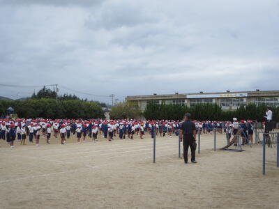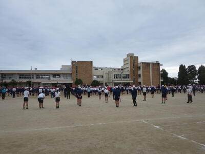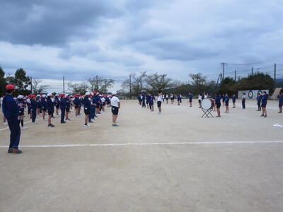 運動会の開閉開式の練習を全員で行いました。