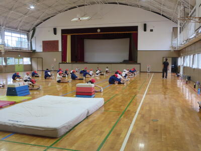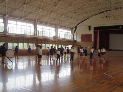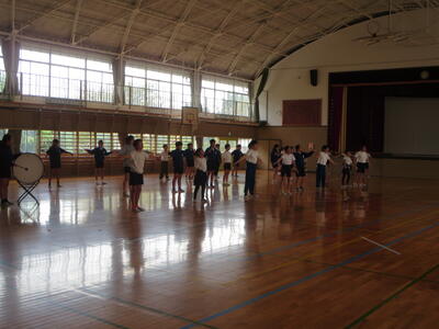 昼休みには、応援団が体育館で練習しました。とてもよく響く声でした。