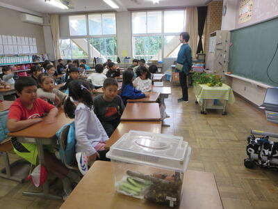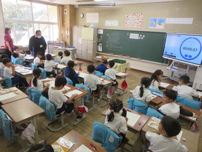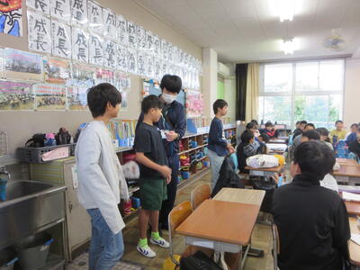 今日は、山部小学校の皆さんが来校し、櫛形小の子供たちと一緒に活動しました。