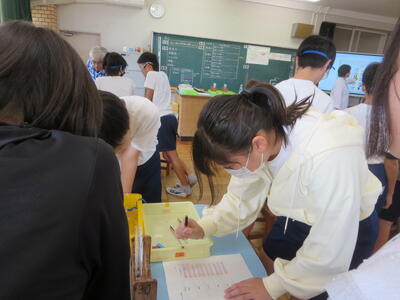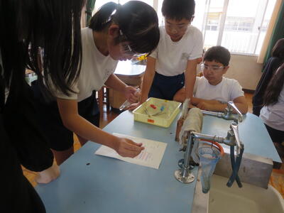 6年生は、水溶液が「酸性」か「アルカリ性」かを明らかにする実験を行いました。