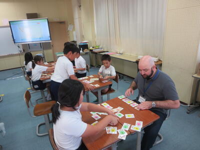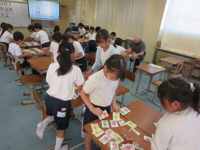3年生、「ABC・・・」 の歌を聴きながら、アルファベットカードを順番に並べて文字と読み方を覚えていました。