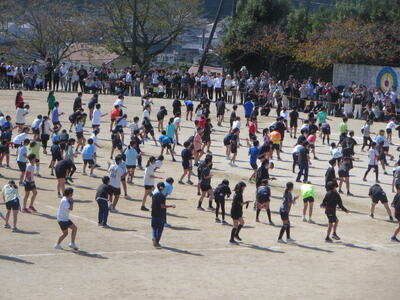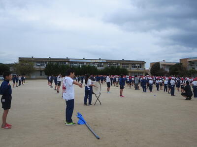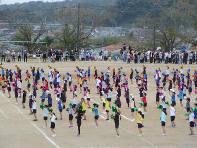 今日は風が強い日でしたが、全校で応援の練習をしました。