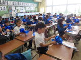 4年生は、ダンスで使うポンポンをつくりました。