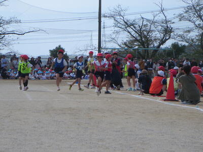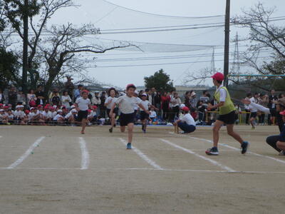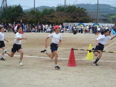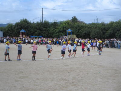1,2年生のダンス、リレーの練習の様子です。