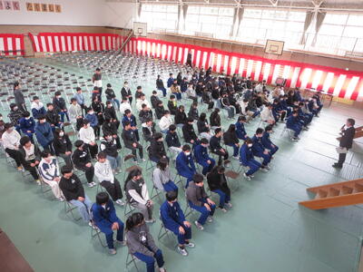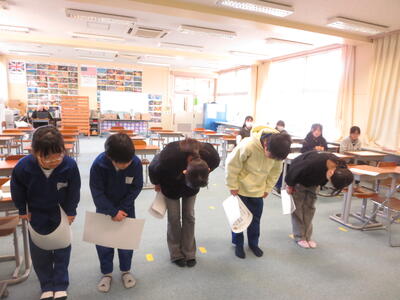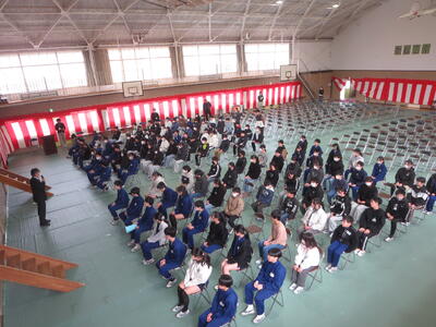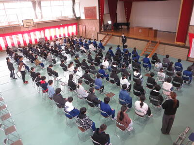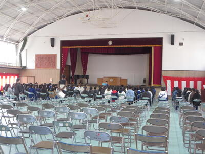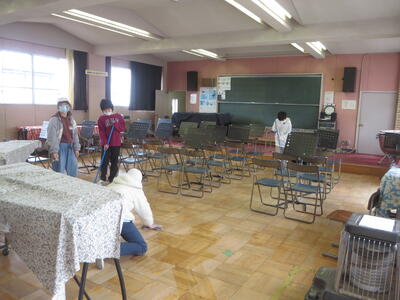 6年生は、今日から卒業式の練習を始めました。卒業式会場は、5年生がつくりました。