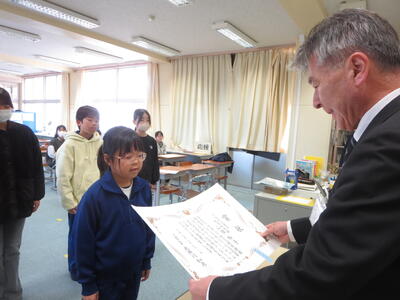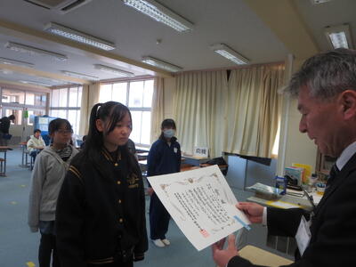 オンラインで表彰を行いました。代表者には直接授与しました。