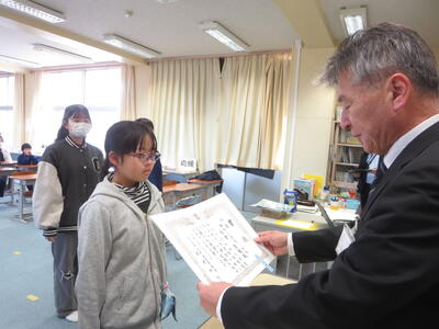 令和8年度の学校統合に向けた準備として、2回目の交流活動を行いました。今回は、山部小の先生が授業を担当する場面もありました。また、6-1と6-3で、昨日と同様に書家の小野先生による書写指導がありました。